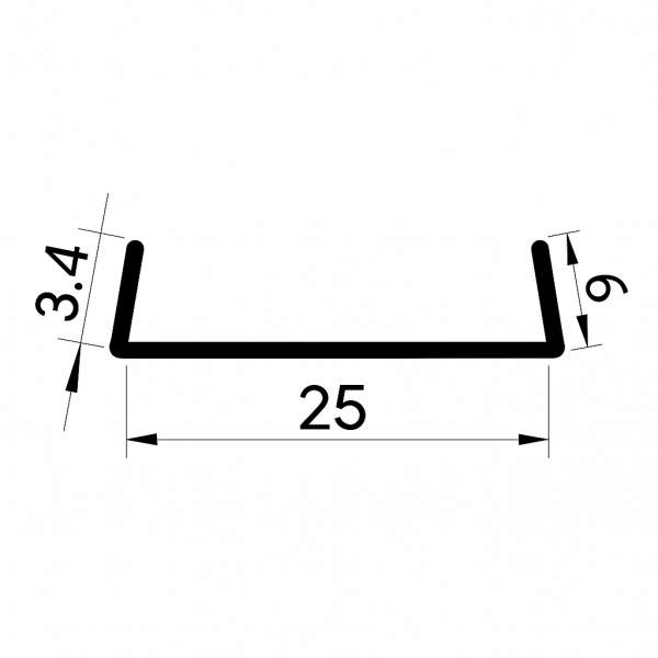 A 25mm wide infill profile designed to neatly bridge and conceal gaps in cabinetry, providing a clean and seamless finish.